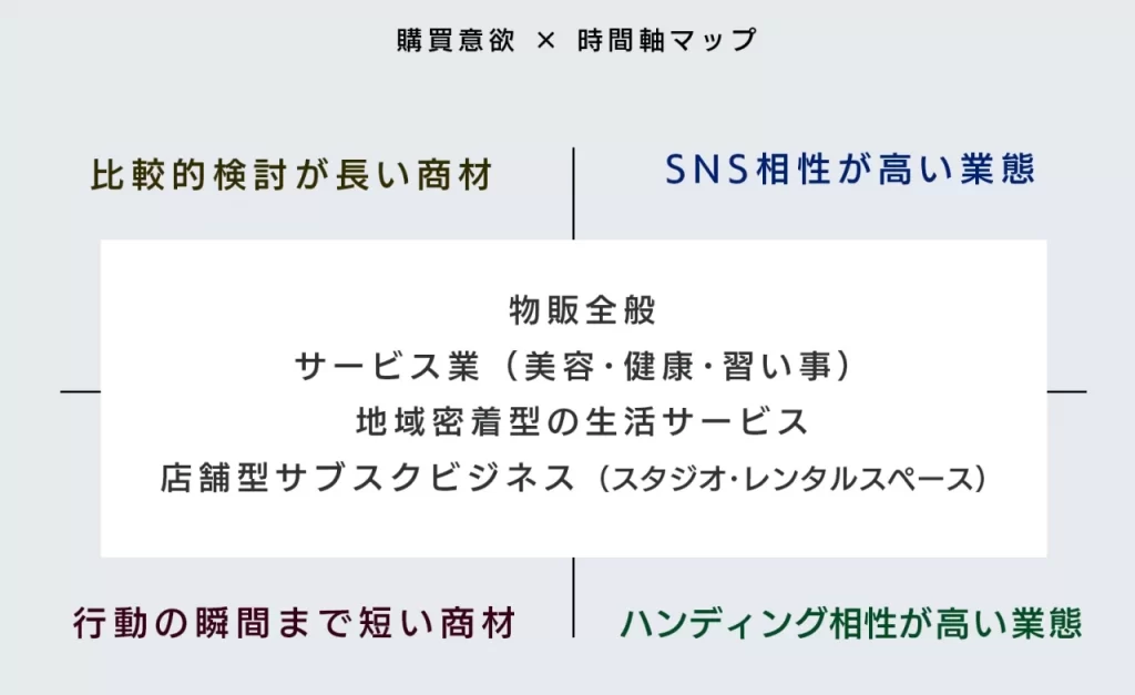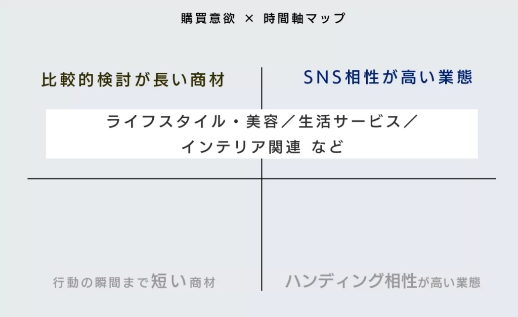 - 「比較検討が長い商材」× SNS相性が高い業態
